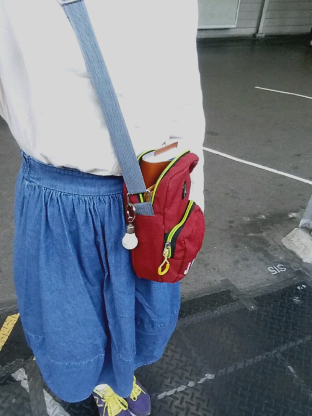 すいません、光が明るすぎてトップスが眩しい… クリーム色です。ボタンついてます。首元は丸くて襟がないです。 お察しの通り、デニム地が大好きです。