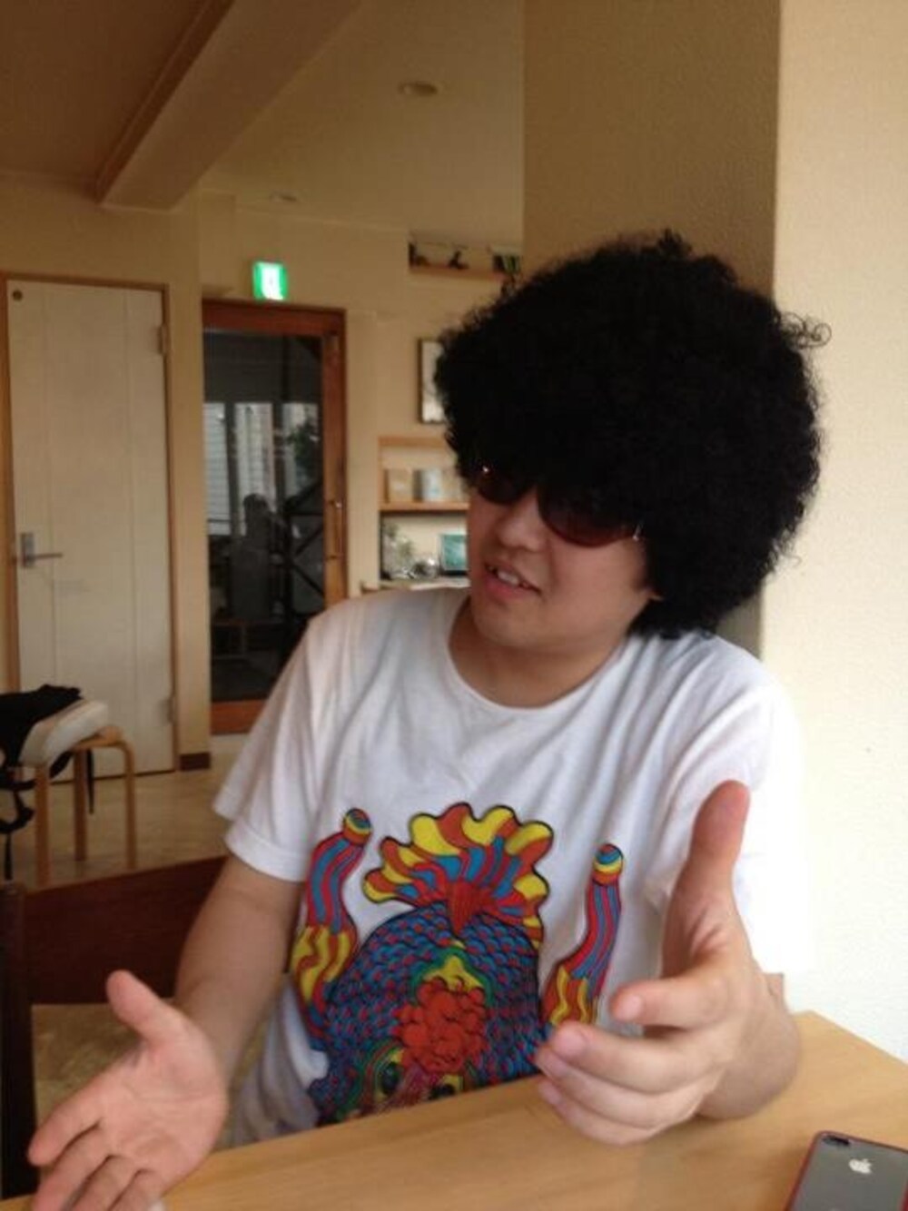新しくビートに関する本を出したんだけど、そのアー写を撮影しているところだね。 ポイントは写ってないけどパンツとシューズ。 春の陽気を表現した花柄のパンツがヒッピーみたいで気に入ってるんだ。フリー!って感じがするだろ?俺たちは自由だー!!ってな? それで靴は…ワニか?クロコダイル的なやつだよね?これは。俺の強さを表している。 グラサンはミュージシャン仲間のタモリからもらったんだ。