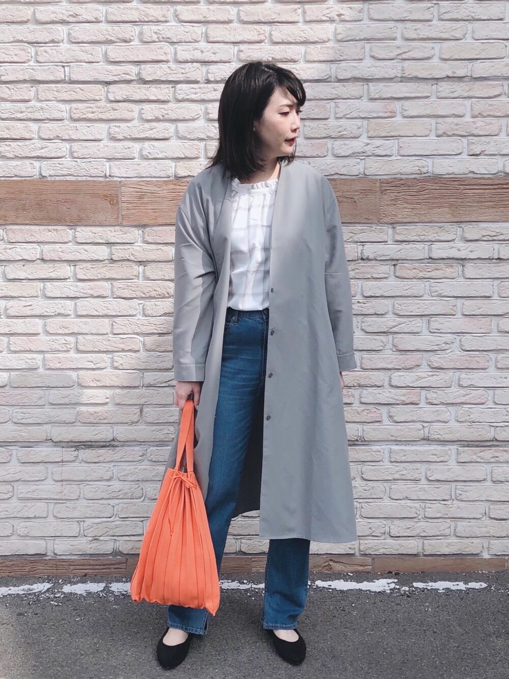 ご覧頂きありがとうございます💓 いいね、お気に入り登録、フォロー フォルダインとっても嬉しいです🥺💕 world online storeのスタイルスナップにも たくさんスタイリング掲載しているので そちらもチェックしてみて下さいね💓 Aラインワンピースは前開きにしても◎✨ オレンジのプリーツニットバッグが 鮮やかなのでコーデのポイントになります🍊