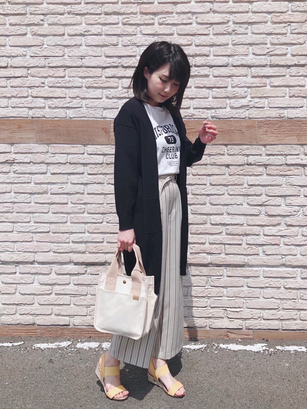 ご覧頂きありがとうございます💓 いいね、お気に入り登録、フォロー フォルダインとっても嬉しいです🥺💕 world online storeのスタイルスナップにも たくさんスタイリング掲載しているので そちらもチェックしてみて下さいね💓 大人のカジュアルコーデ✨ ブラックのカーディガンは 着回し力抜群でオススメです👍 パンツはシルエットがキレイで スッキリ見えしますよ❤️ イエローのサンダルを差し色に💛