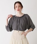 ネリ(SHOO・LA・RUE)のシャツ/ブラウス「◆【S-L】シャーリングギンガムチェックブラウス」を使ったコーディネート