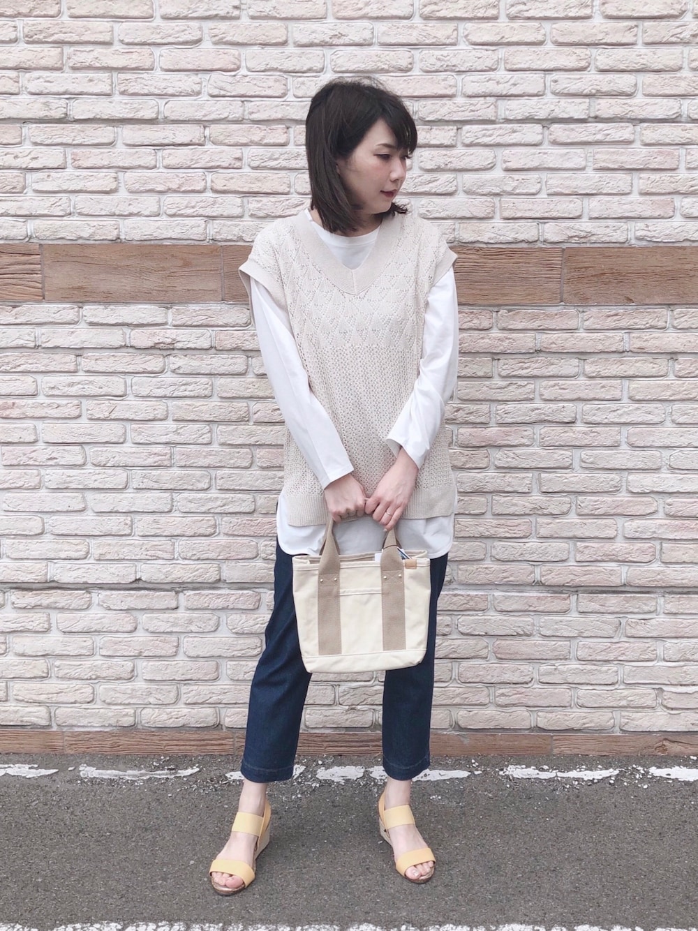 ネリ(SHOO・LA・RUE)のベスト「◆【S-3L/2点セット】麻タッチ透かし切替ベスト+インナー」を使ったコーディネート