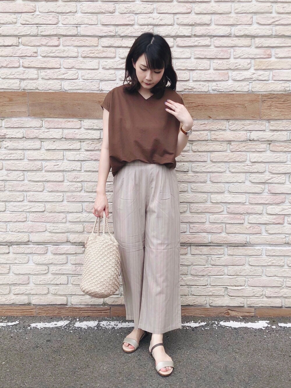 ネリ(SHOO・LA・RUE)のその他パンツ「◆リネン風ストライプワイドパンツ」を使ったコーディネート