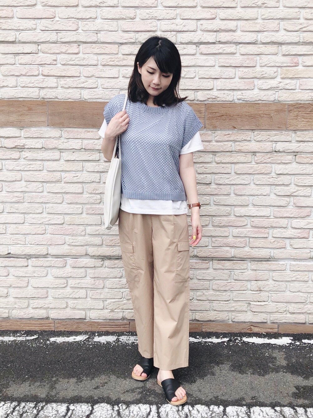 ご覧頂きありがとうございます💓 いいね、お気に入り登録、フォロー フォルダインとっても嬉しいです🥺💕 world online storeのスタイルスナップにも たくさんスタイリング掲載しているので そちらもチェックしてみて下さいね😉 プロフのリンク(🖥)から飛べます✈️ くすみブルーのニットベストは 嬉しいインナー付き😆 ベージュのカーゴパンツと合わせて 大人カジュアルな装いに✨