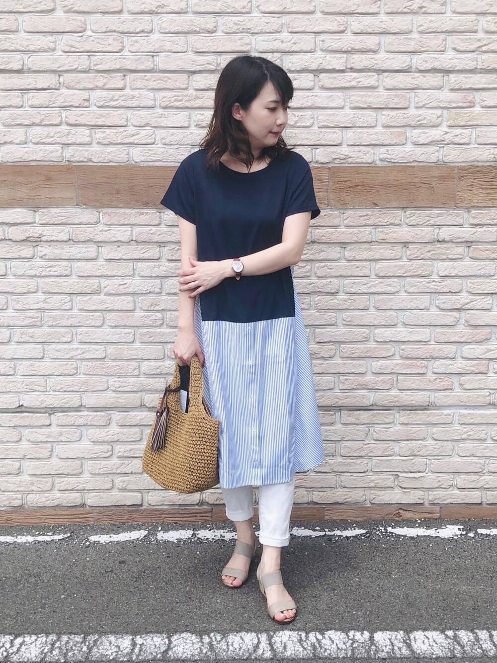 ご覧頂きありがとうございます💓 いいね、お気に入り登録、フォロー フォルダインとっても嬉しいです🥺💕 world online storeのスタイルスナップにも たくさんスタイリング掲載しているので そちらもチェックしてみて下さいね😉 プロフのリンク(🖥)から飛べます✈️ ストライプの切替が今年っぽいワンピースは 一枚でサマになります👗✨ ホワイトデニムと合わせて 夏にぴったりな爽やかコーデに仕上げました👍