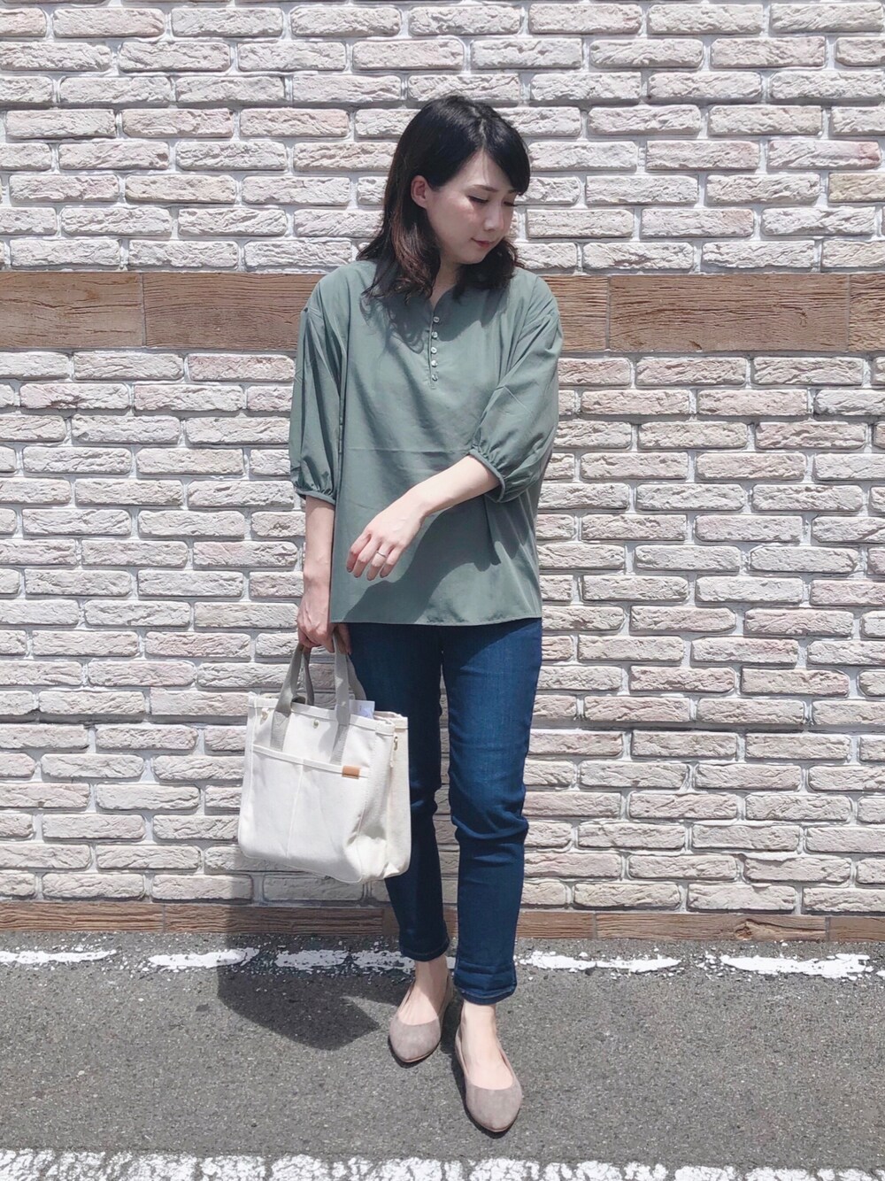 ご覧頂きありがとうございます💓 いいね、お気に入り登録、フォロー フォルダインとっても嬉しいです🥺💕 world online storeのスタイルスナップにも たくさんスタイリング掲載しているので そちらもチェックしてみて下さいね😉 プロフのリンク(🖥)から飛べます✈️ 落ち着いたグリーンが大人の女性にぴったりなブラウスは パンツにもスカートにも合う丈感が◎ 今回はスキニーデニムと合わせて 大人カジュアルな装いに✨