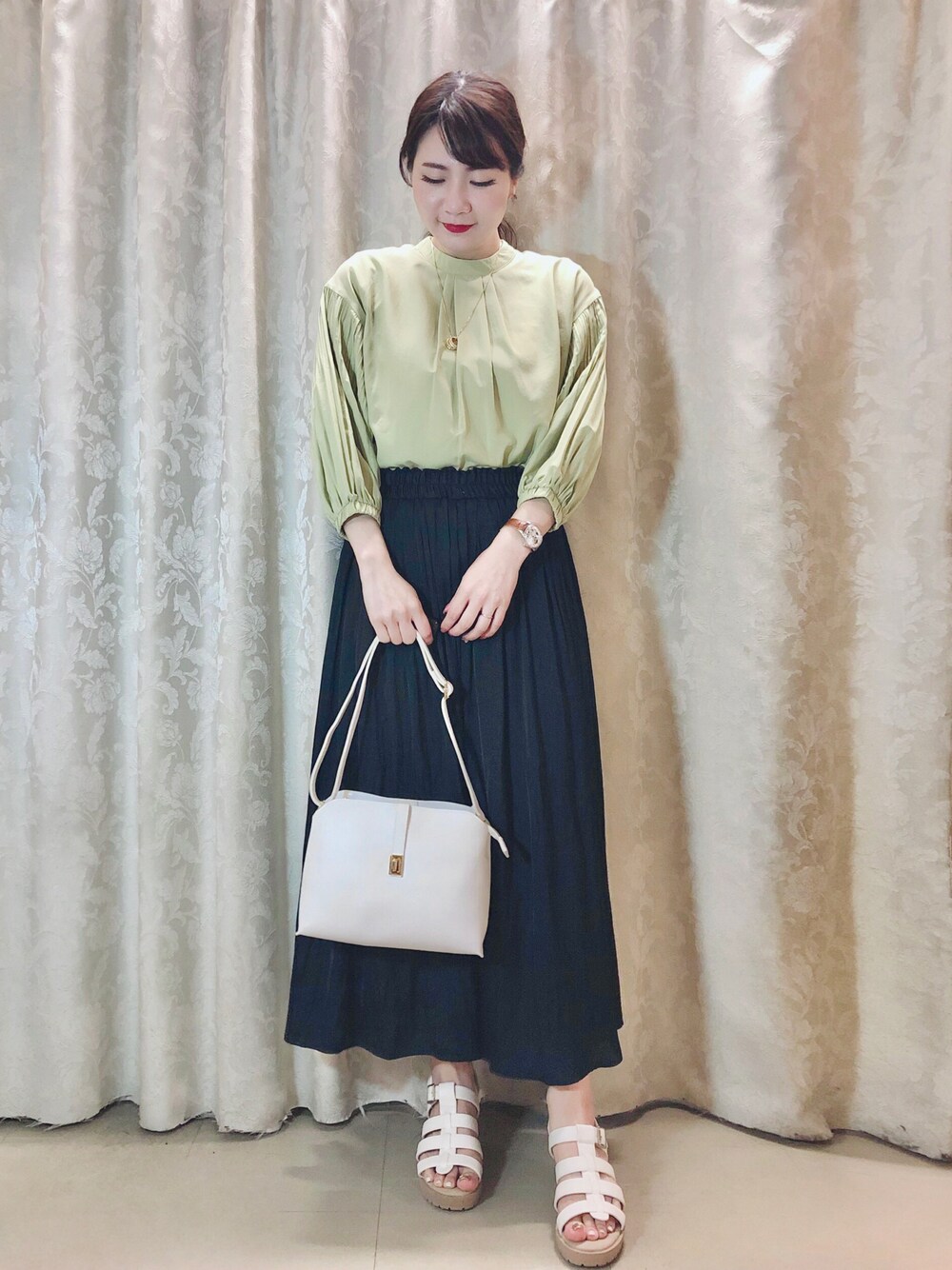 ネリ(SHOO・LA・RUE)のネックレス「◆シェルリングスライダーネックレス」を使ったコーディネート