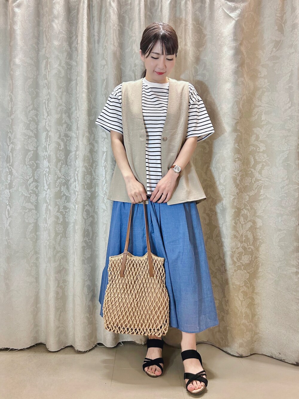 ネリ(SHOO・LA・RUE)のトートバッグ「◆素材コンビマクラメトート」を使ったコーディネート