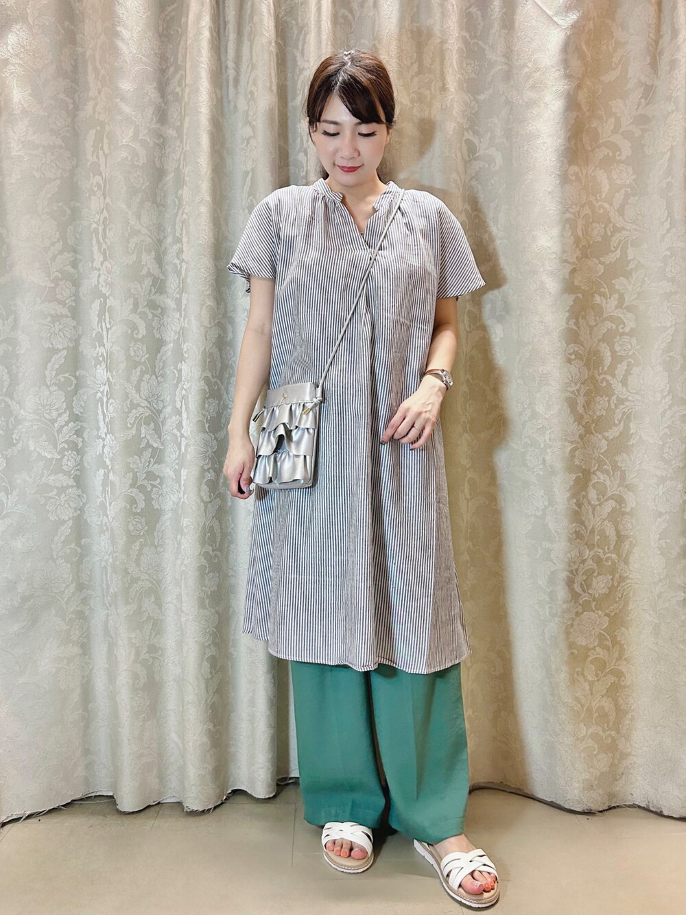 ネリ(SHOO・LA・RUE)のワンピース「◆【UVカット/抗菌防臭/吸水速乾】大人のためのフレンチリネンブレンド ワンピース」を使ったコーディネート