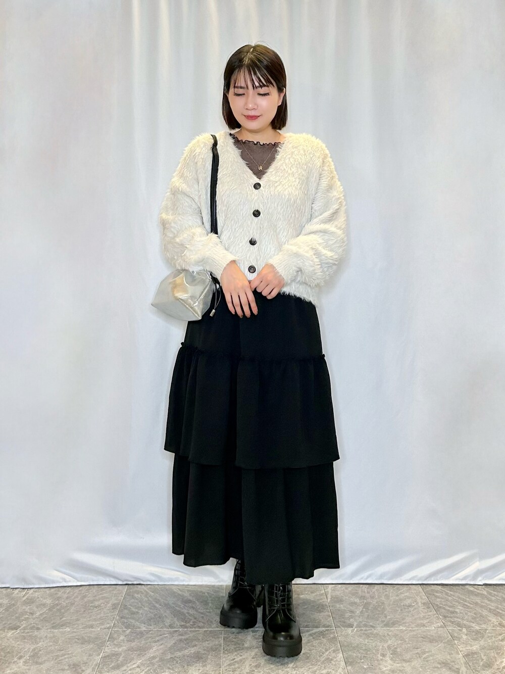 【サイズ感】 カーディガン・インナーはゆったりめ。 スカートはウエスト楽ちん。 【素材感・着心地】 カーディガンはふわふわで肌触り◎ インナーはラメ入りでトレンド感があります。 スカートはシボ感のあるヴィンテージ風の表面感がポイントの素材。落ち感があり、しなやかな肌触りの素材です。 【おすすめポイント】 厚底レースアップブーツは、トレンド感抜群です。 【スタイリングポイント】 大人可愛いモノトーンコーデ。 ティアードスカートでトレンド感UP! ------------ いいね、お気に入り登録、フォロー フォルダインとっても嬉しいです🥺💕 world online storeのスタイルスナップにも たくさんスタイリング掲載しているので そちらもチェックしてみて下さいね😉 プロフから飛べます🕊☘️