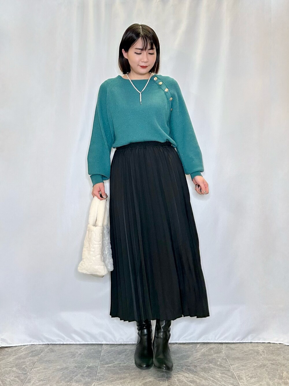 ネリ(SHOO・LA・RUE)のトートバッグ「◆スパンコールフェイクファーランチトートバッグ」を使ったコーディネート
