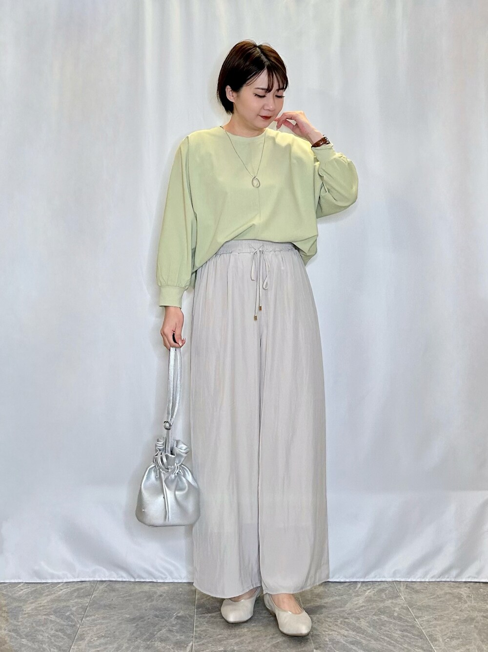 ネリ(SHOO・LA・RUE)のその他パンツ「【高レビュー/着丈選べる】さらり柔らか マットサテンワイドパンツ」を使ったコーディネート