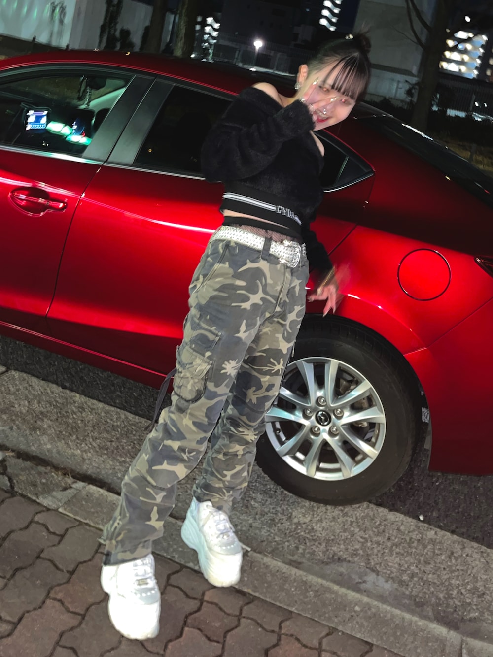 持ってる迷彩使いたくてセクシーな黒ファーと合わせてみた✌️🖤