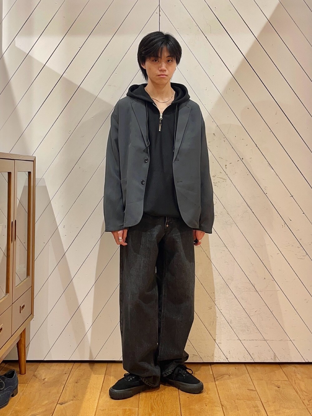 パーカーはジップを下げてインナーにTシャツやシャツを入れてもいいと思います。
