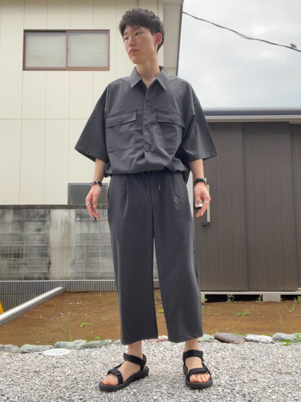 GUのダブルポケットワイドフィットシャツと ワイドイージークロップドパンツのセットアップコーデ🐺 上下とも3色買いしました! tops:XL pants:S