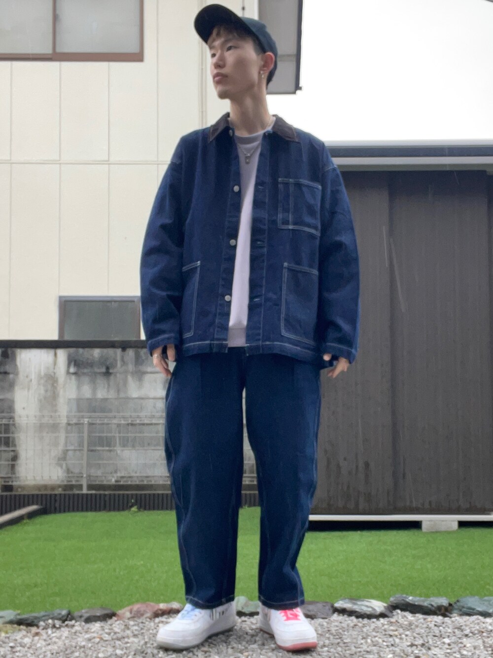 デニムセットアップコーデ👖 インナーにパープルのスウェットを合わせて春らしさをプラスし、キャップと白スニーカーを合わせてカジュアル春コーデにまとめました🍡🌸