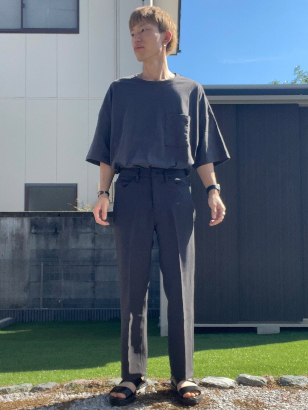 ワントーンコーデ🦨 全身GUのアイテムを使って、Tシャツをチェックパンツにタックインしたきれいめカジュアルコーデにしました🕴