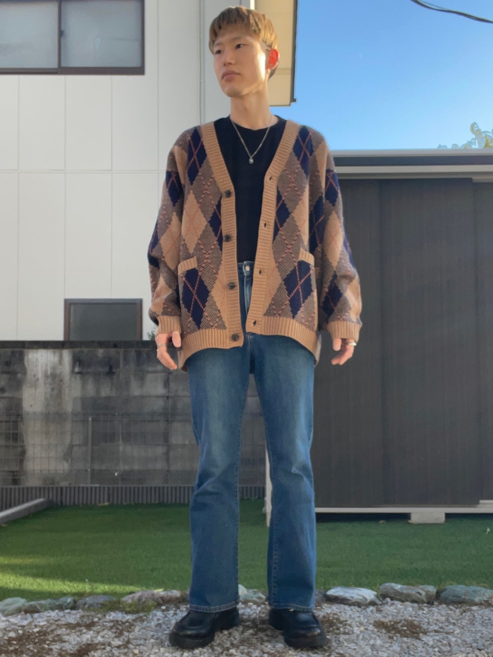 おたけのカーディガン/ボレロ「ローゲージアーガイルカーディガン」を使ったコーディネート