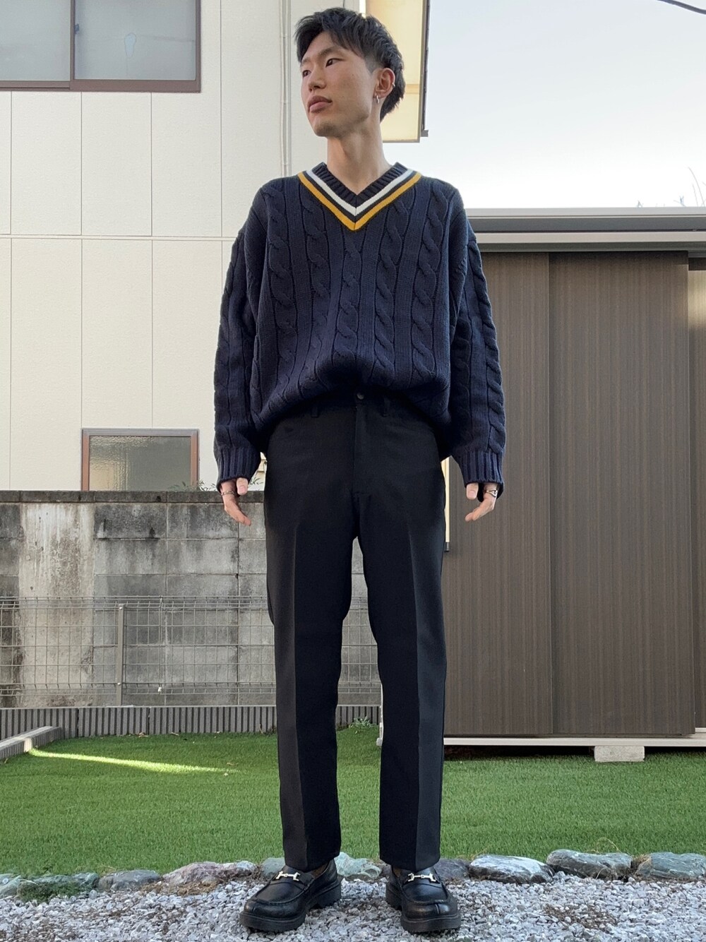 セーターコーデ🐰 全身GUのアイテムを使ったプチプラコーデです🙂 ローゲージでかわいい柄のセーターをスラックスにタックインしてビットローファーを合わせた大人カジュアルスタイルにしました👨 2022年もありがとうございました🙇♂️ 2023年もよろしくお願いします✨
