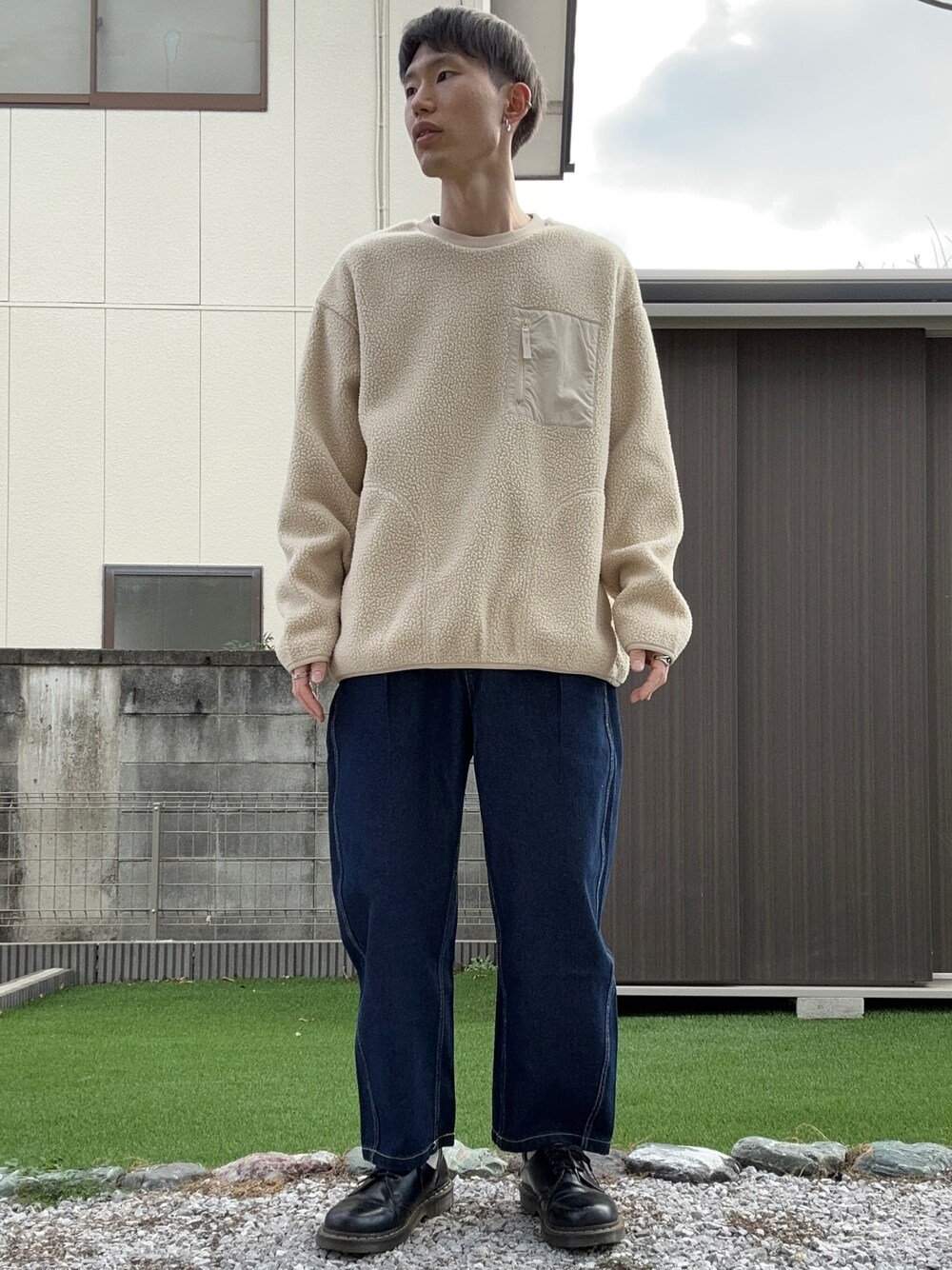 ボアコーデ🐑 デニムパンツと合わせてカジュアルスタイルに🤟 新年明けましておめでとうございます🎍🐇 今年もいろいろなコーディネートを投稿していこうと思います😌 2023年もよろしくお願いします🙇♂️