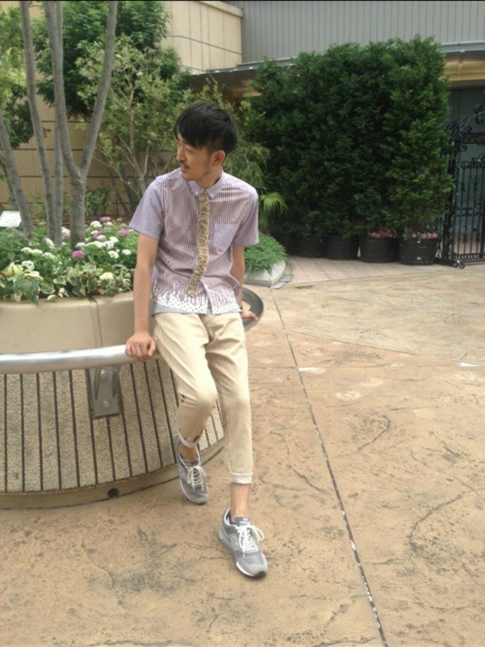 こちらのシャツは半袖ですが、 秋を意識してボルドーカラーを選びました! 更に秋っぽさを出すために、 ボトムはベージュカラーを選び、 同系色コーディネートです! こちらのパンツ、細身ですが、 ストレッチが効いていてはき心地抜群! オススメです。