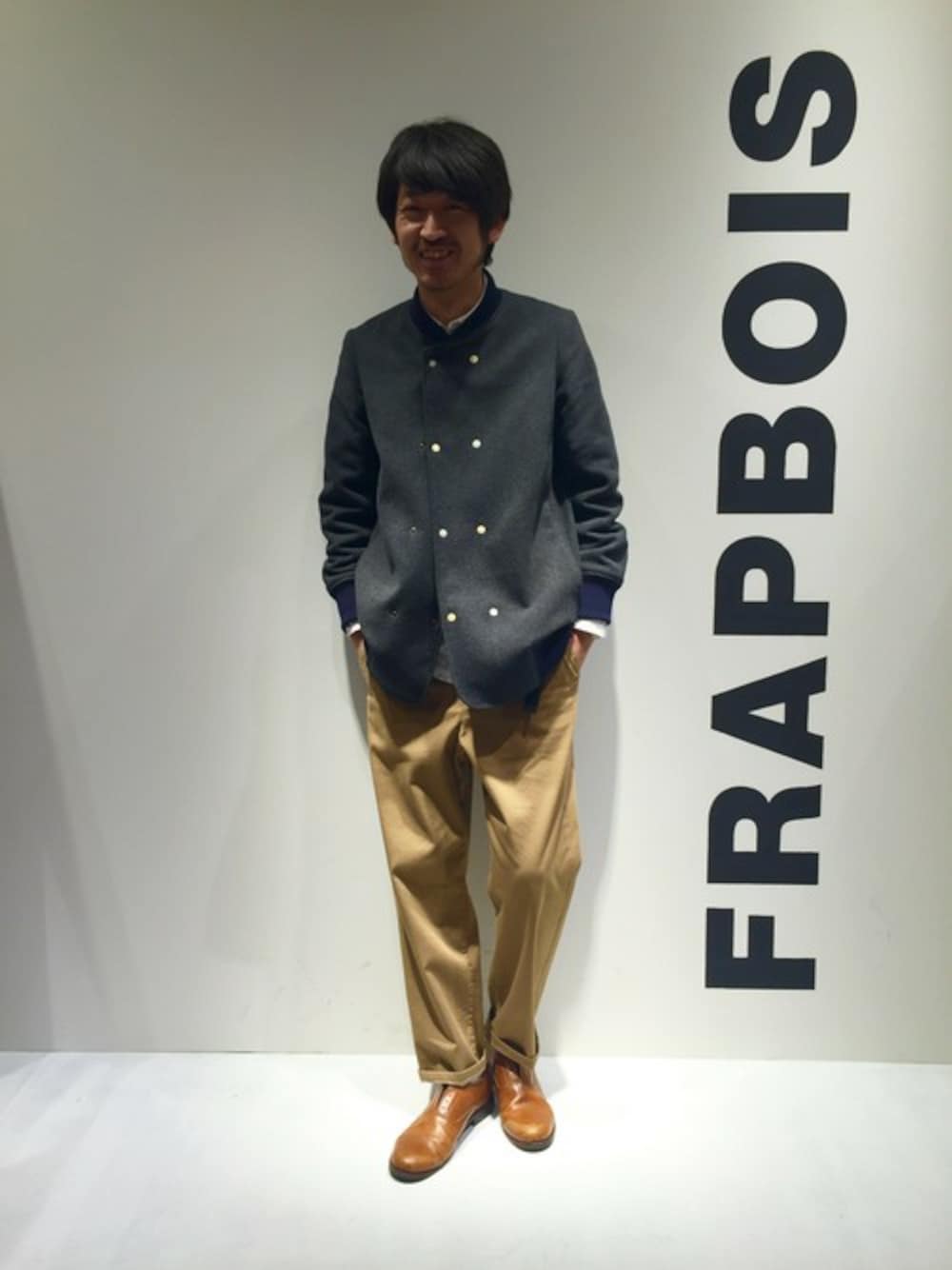 この12月に発売になったばかりの新作を着てみました! ダブルの前合わせが印象的なブルゾンは、 とても軽く暖かな素材感で、冬のアウターに ありがちな動きにくさはゼロ!!の ストレスフリーな着心地です。 合わせたパンツはシンプルなチノパンですが、 裏地が微起毛されていて、肌触り抜群!! 保温効果も期待できそうです。 そして、何よりもこのベージュの色合い!! 少し濃いめの本当に良い色してます!! 是非、店頭でお確かめ頂きたいです。