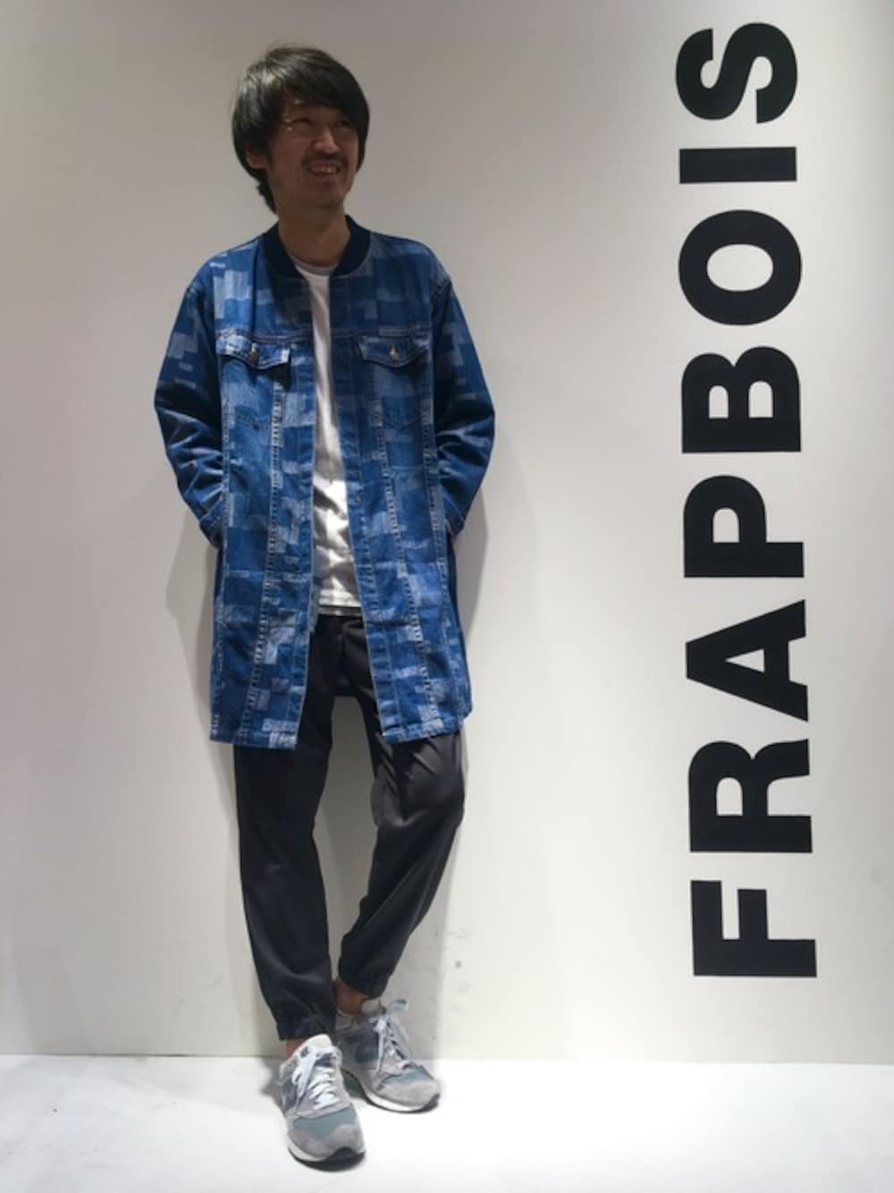 みなさま、こんにちは!! ここ最近、やっと秋らしさを感じれる気候に なって来ましたね〜。 朝晩など、少し寒いぐらい?! アウターやニットが必要な日も、 すぐそこ!!ですね(^○^) 今週末、全国のFRAPBOISには、 秋冬の新作が店頭に並びます!! 今日はその中からお気に入りのアウターを 着てみました(^○^)!! リペアしたようなデザインが特徴の デニムのショップコートです。 サラッと羽織れて、大活躍間違いなし(^○^) 季節を問わず使える素材感も魅力です。