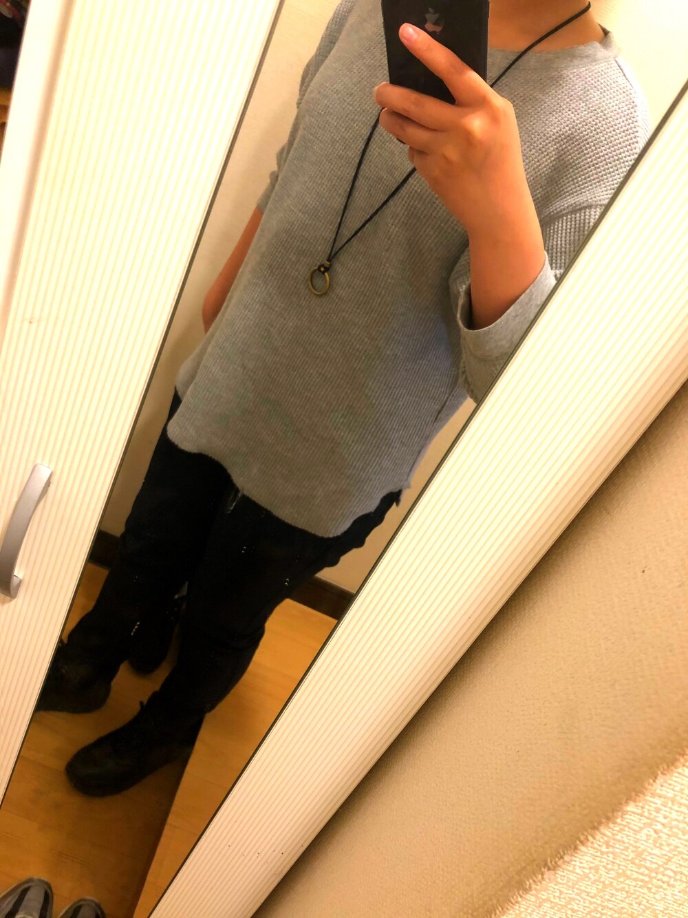 ちょっと暖かくなってきました。 なので7分丈のワッフルシャツを着てメンズ風に(*´-`)