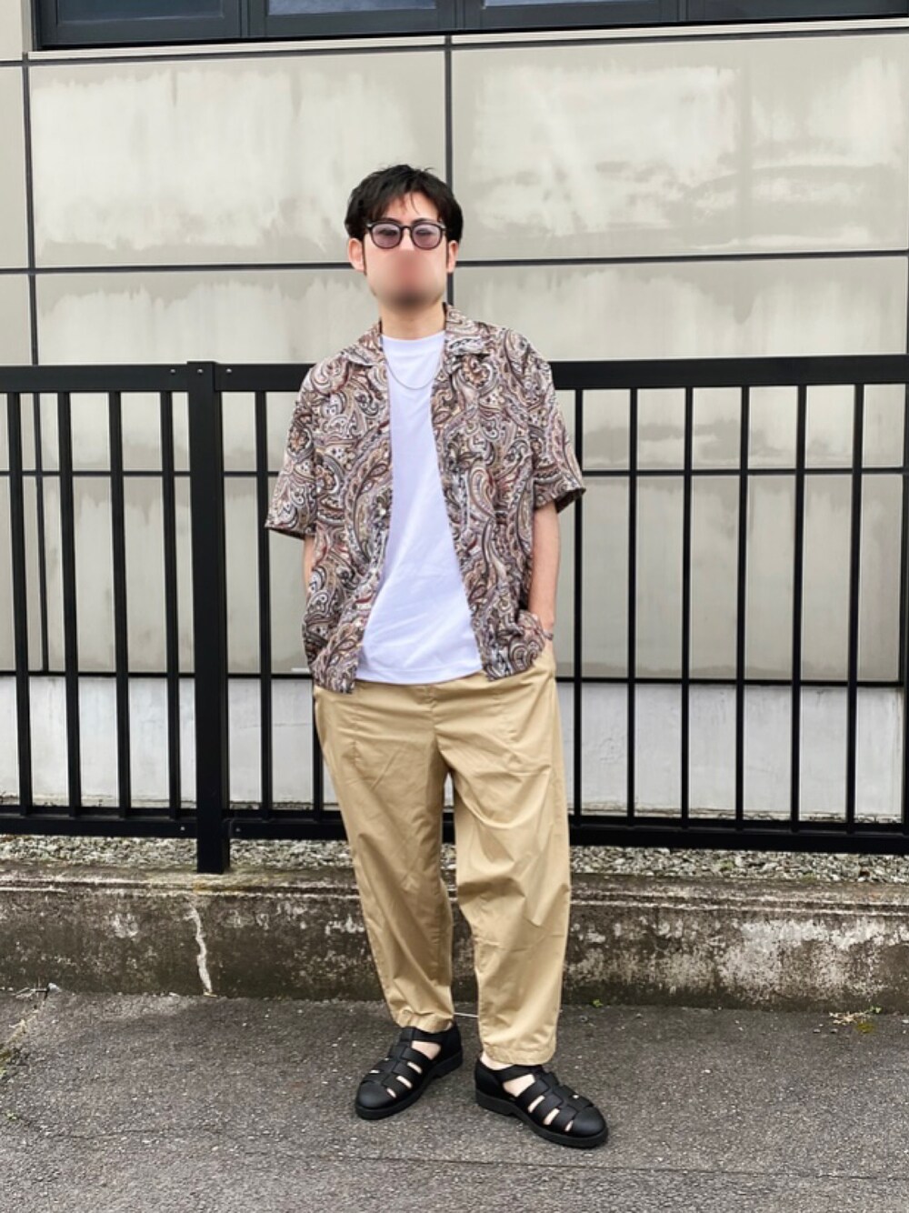 トレンドアイテムの1つであるグルカサンダルと自分的に今年キテるアイテムの柄シャツをプチプラブランドと合わせてみました。