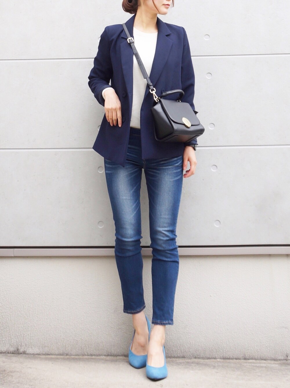 Eのデニムパンツ「【WOMEN】ストレッチデニムスキニーパンツ」を使ったコーディネート