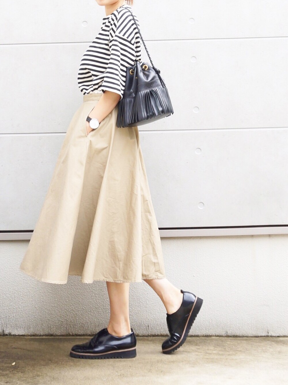 Eのスカート「コットンサーキュラースカート(ハイウエスト・丈標準74~77cm)」を使ったコーディネート