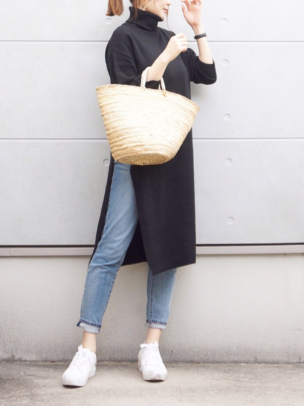 Eのデニムパンツ「スリムテーパードデニムパンツ[WOMEN]」を使ったコーディネート