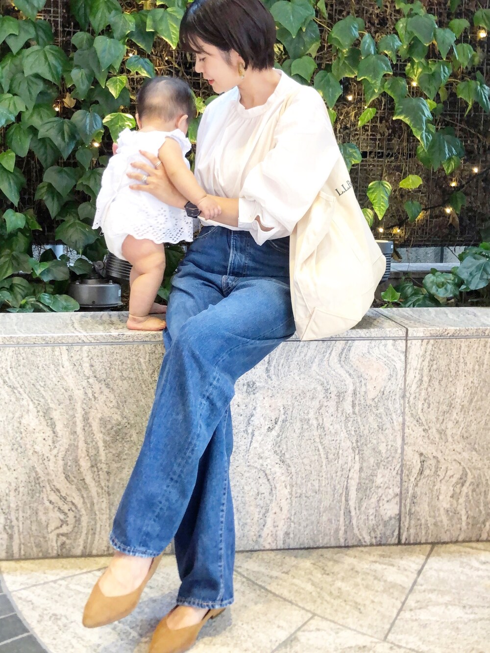 Eのデニムパンツを使ったコーディネート