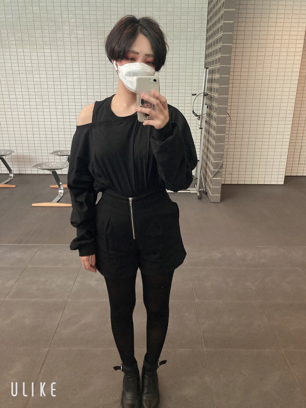 オールブラックコーデです。 トップスはイロチ買いしたトップスのブラックです。 パンツはハイウエストでこちらもたくさん着回しがきいて使い勝手が良いです。