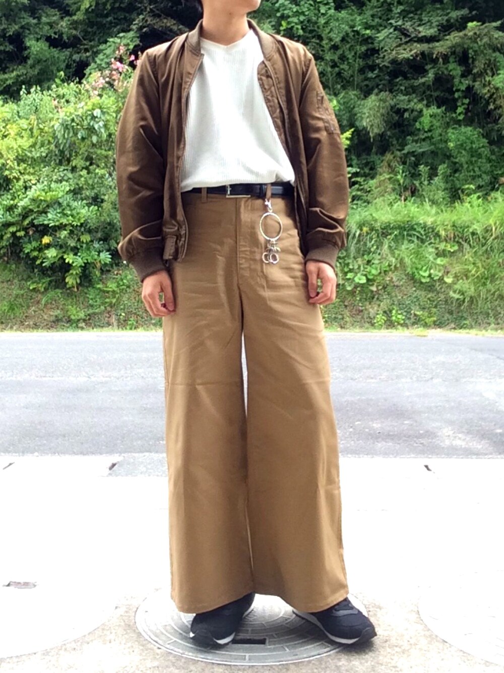 GUのチノワイドパンツ(レディース)光沢もあって高見え🤭 アウターはカーキなんです…🤢 いつもいいね、お気に入りありがとうございます😊