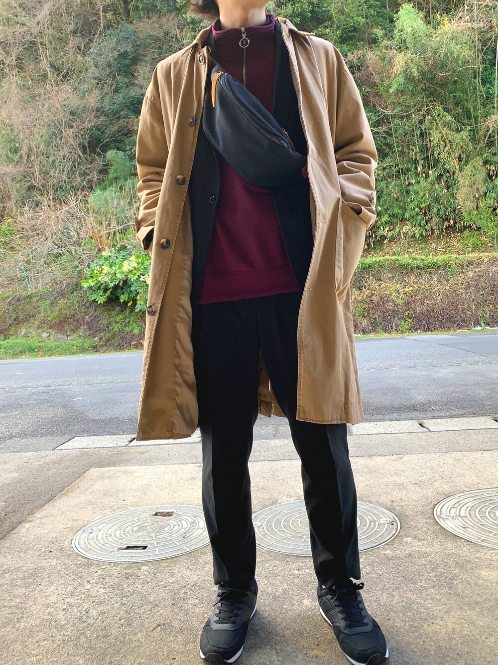 準備中のステンカラーコート「バイオウォッシュ綿ツイルバルカラーコート」を使ったコーディネート