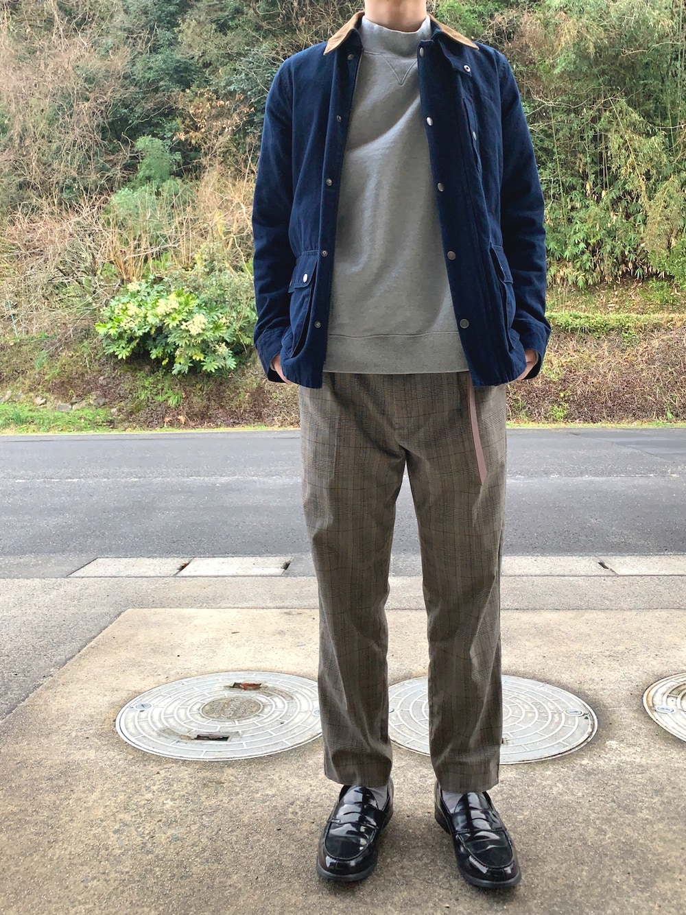 トップスとパンツをグレーで落ち着かせてるのでアウターのデニムジャケットが映えてると思います🙆♂️ ローファーでカジュアル過ぎないように👞 いつもいいね、お気に入りありがとうございます😊