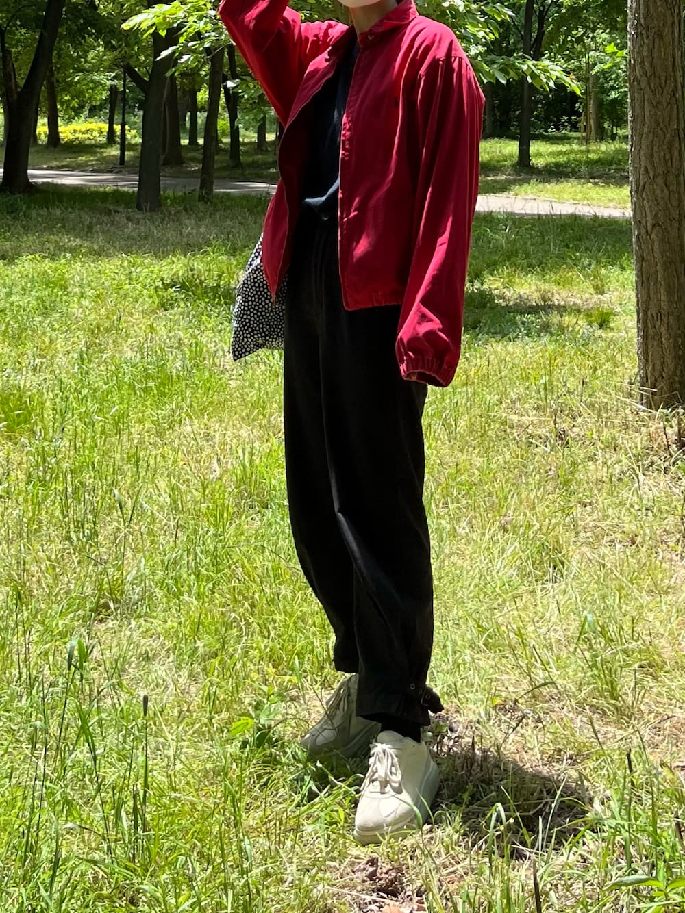 2022/春 緑の中にいる赤い奴 俺ァ健康優良不良少年だぜ、コーデ