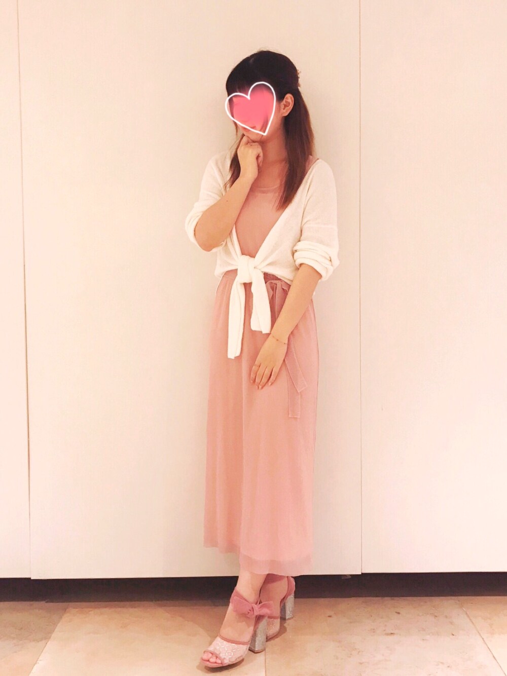 momochanのワンピース「光沢プリーツタンクワンピース」を使ったコーディネート
