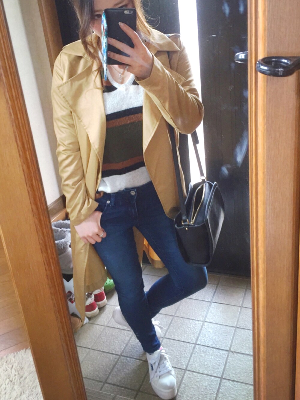 最近はトレンチばっかの私です。(笑) GUのスキニーは履き心地抜群❣ 久しぶりにスニーカーにして、カジュアルにしましたd(^_^o)
