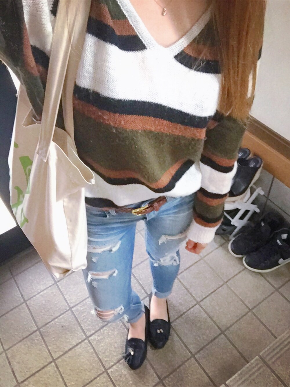 ちょっと肌寒かったのでかなり薄手のニット🐶 かなりのラフコーデになってしまいましたが、、 梅雨入りして服に困る時期がやってきました(つД`)ノ まだ始まってもないですが早くあけてほしいものです笑