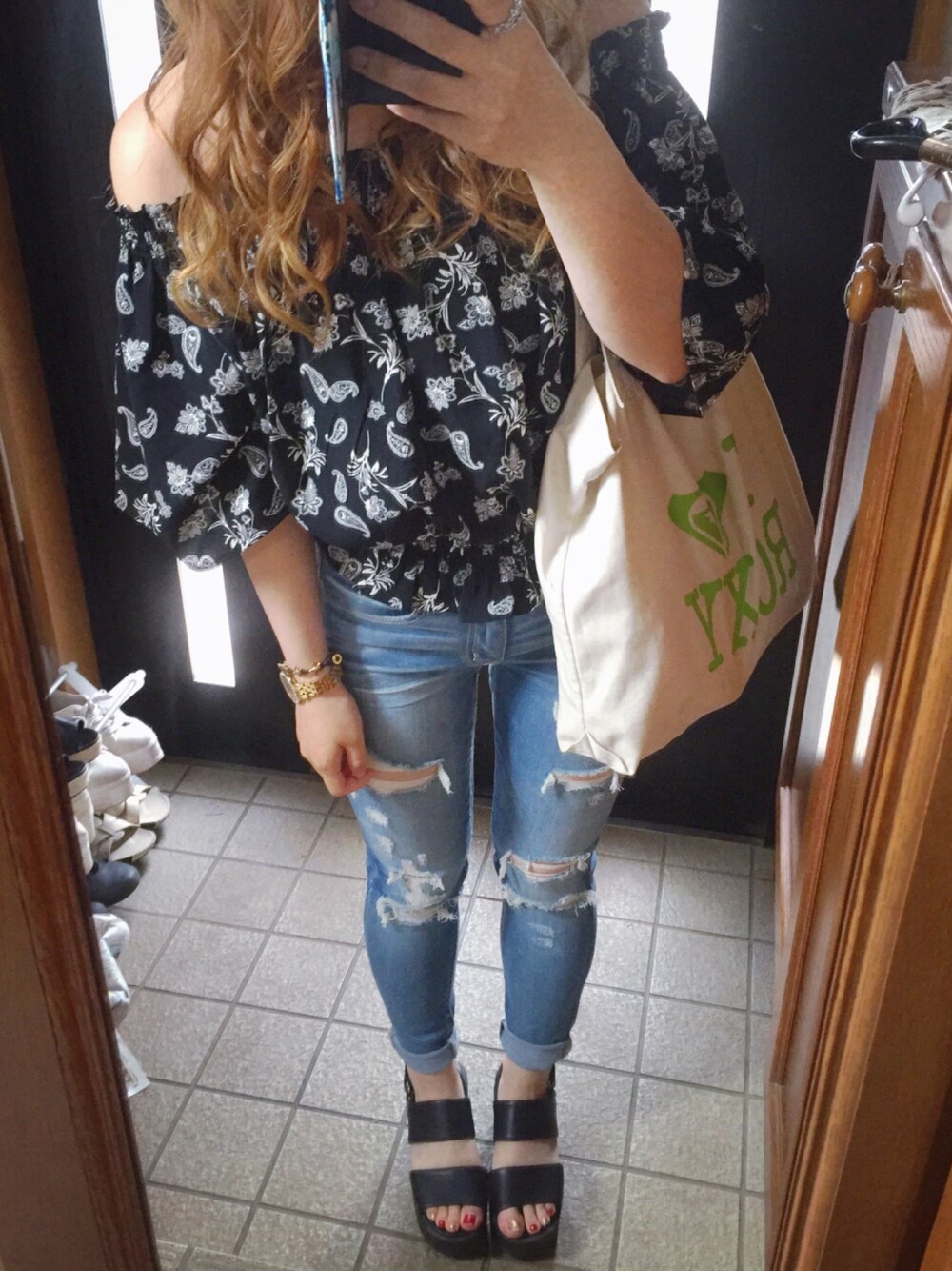 GUのオフショルゲットしたので早速٩(ˊᗜˋ*)و やっぱりデニムと合わせるとオフショルは かわいいですね❤️ この時期は湿気がすごくて嫌になります( ˙o˙ ) 新しく買ったお靴も雨が続いて全然履けない、、😭笑 今日もお仕事がんばろう!