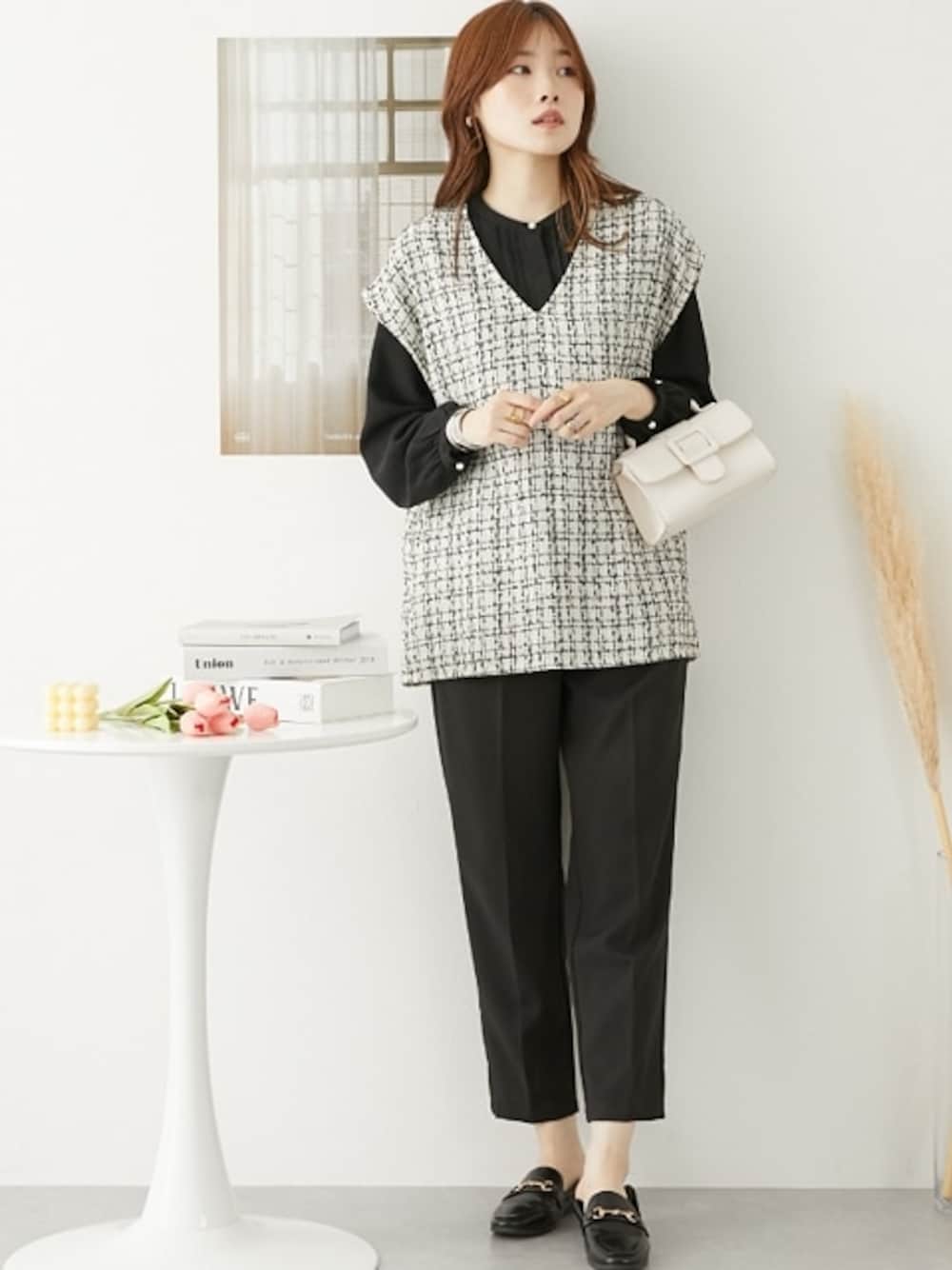 nissen Ladies Models(nissen本店models)のパンツ「ラクしてキレイ見え テーパードカラーパンツ」を使ったコーディネート