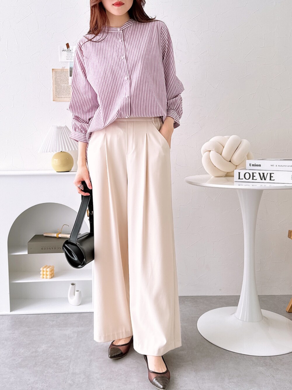 nissen Ladies Models(nissen本店models)のシャツ/ブラウス「パール調ボタンブラウス(前後2WAY・袖2WAY)」を使ったコーディネート