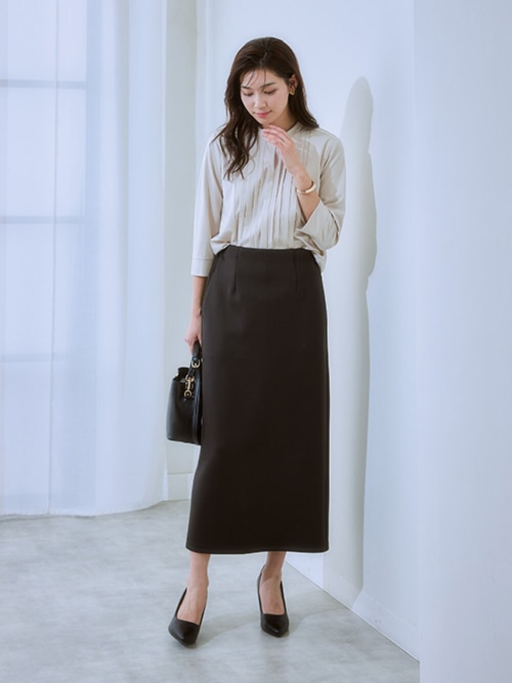 nissen Ladies Models(nissen本店models)のTシャツ/カットソー「【ひんやり接触冷感】ブラウス見えシルケットポンチピンタックカットソートップス」を使ったコーディネート