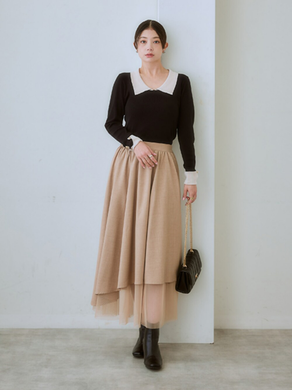 nissen Ladies Models(nissen本店models)のスカート「アシンメトリーチュール使いスカート(セットアップ対応)」を使ったコーディネート