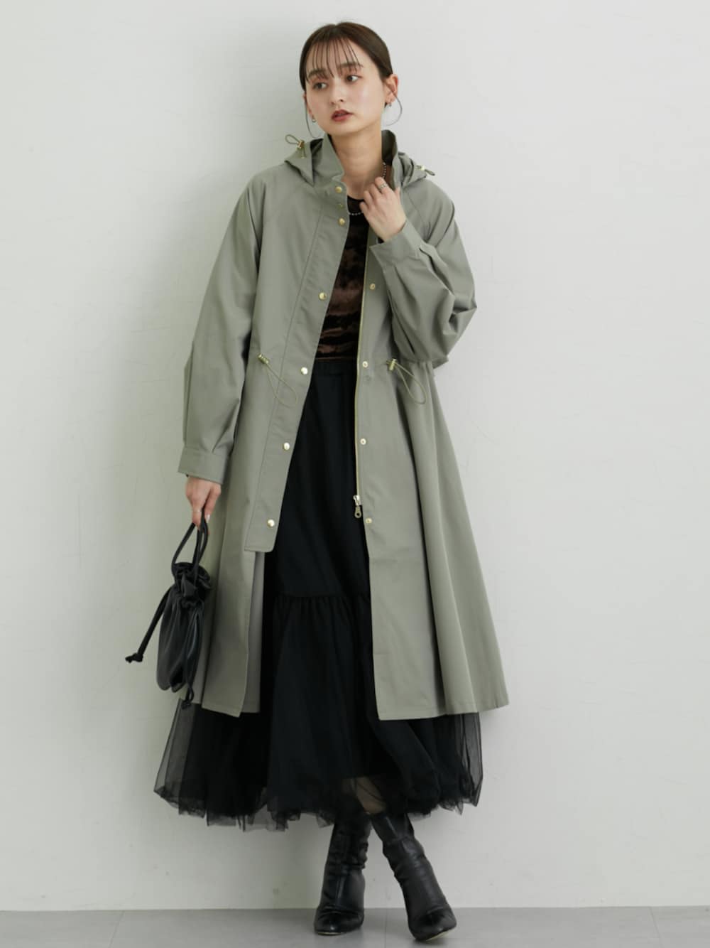 nissen Ladies Models(nissen本店models)のモッズコート「バックヨークロング丈モッズコート」を使ったコーディネート