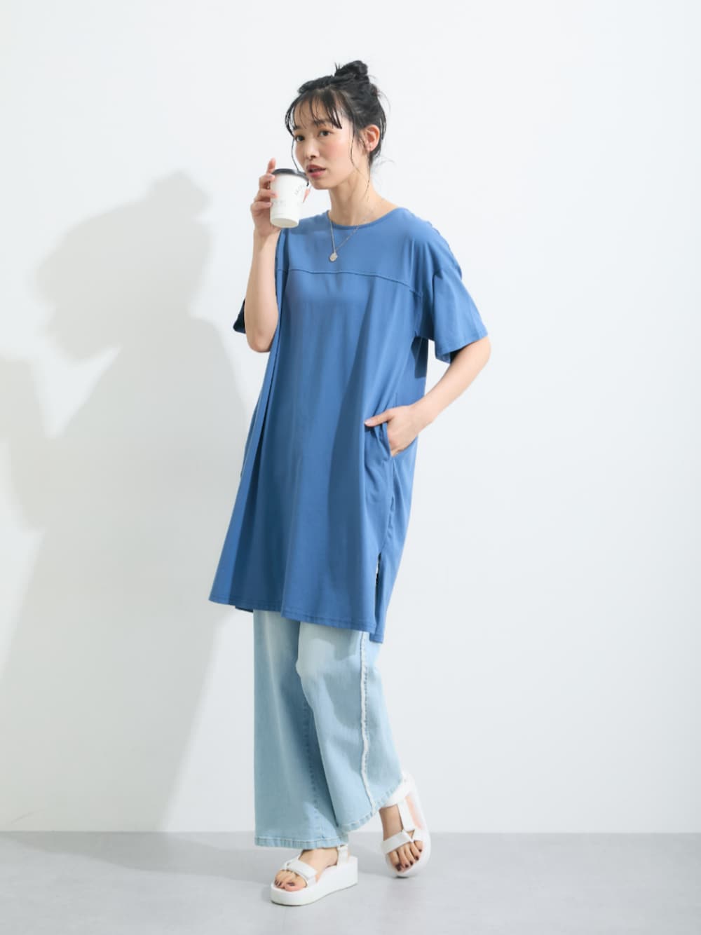 nissen Ladies Models(nissen本店models)のパンツ「<大きいサイズ> サイドフリンジストレッチデニムパンツ」を使ったコーディネート