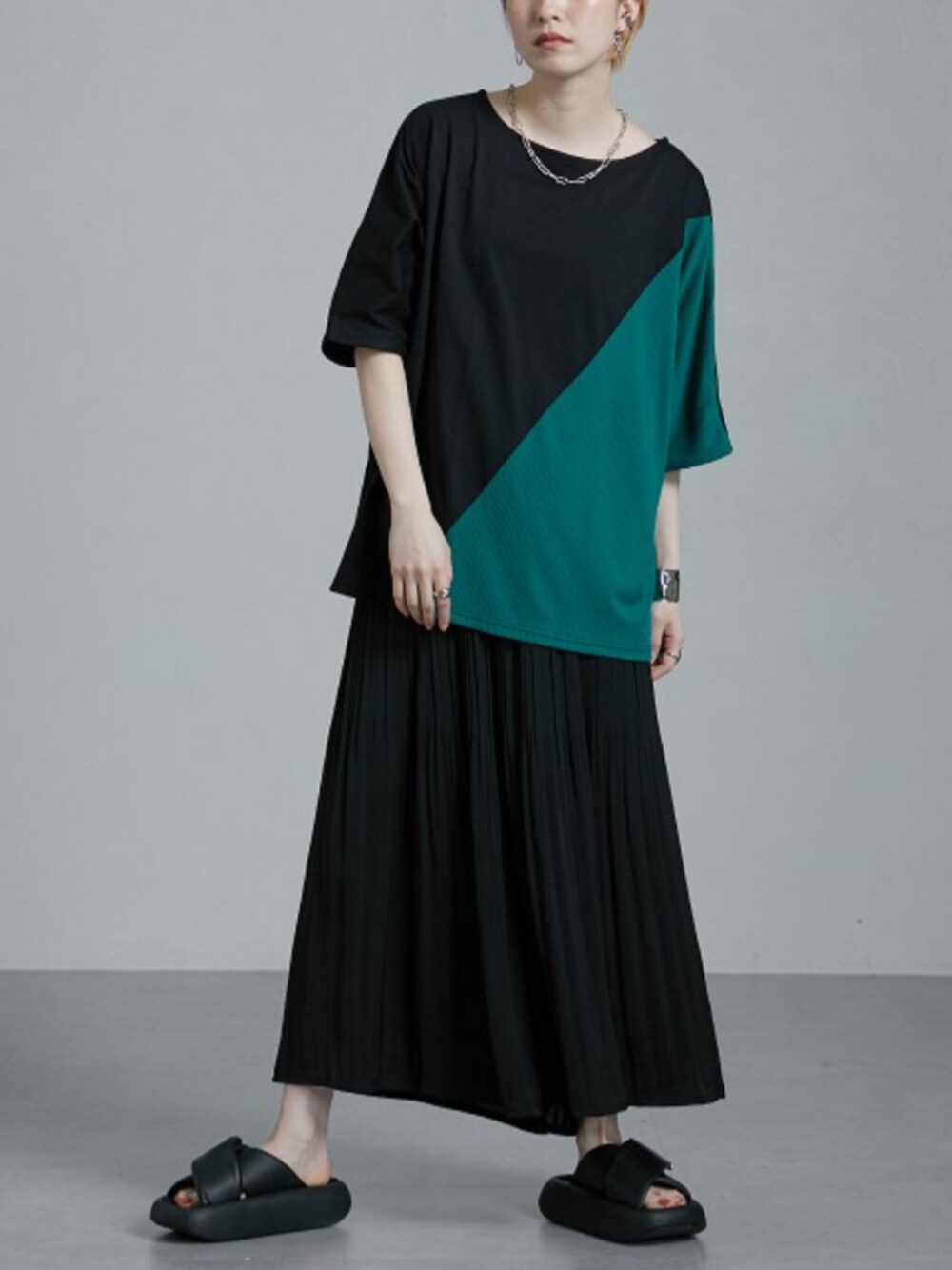 nissen Ladies Models(nissen本店models)のTシャツ/カットソー「リブ切替ゆったりシルエットTシャツ [Soiunique]」を使ったコーディネート