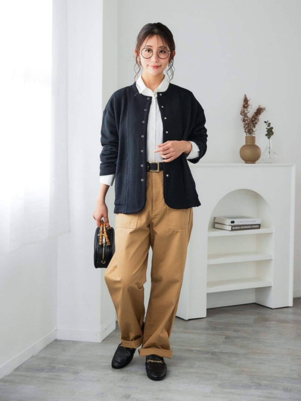 nissen Ladies Models(nissen本店models)のカーディガン/ボレロ「<大きいサイズ>綿100%裏毛裾ラウンドカーディガン」を使ったコーディネート
